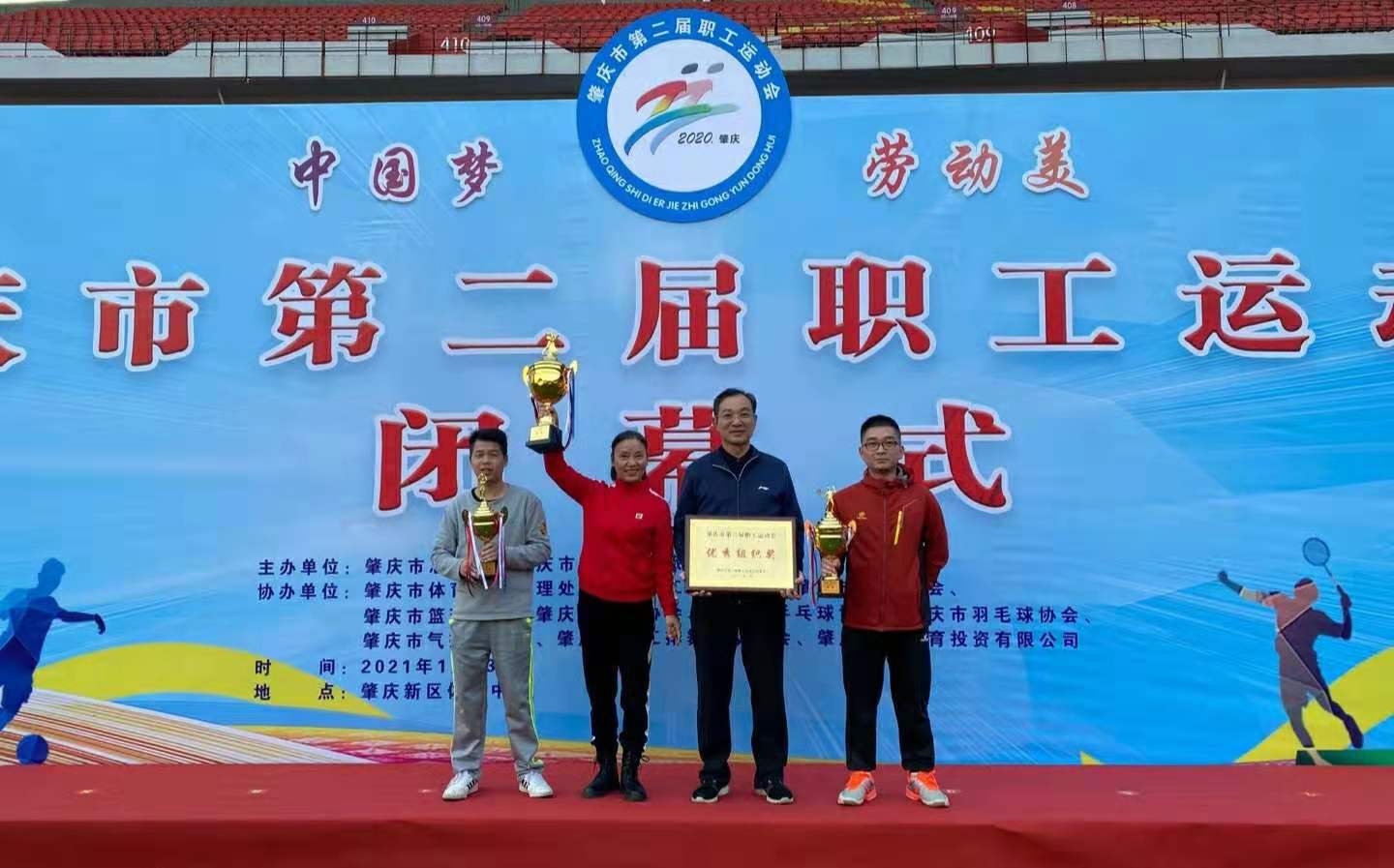 1月23日下午,“中国梦.劳动美”肇庆市第二届职工运动会闭幕式在肇庆新区体育中心专业足球场举行。TapTap点点官方网站荣获优秀组织奖。